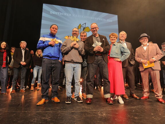 Die Sieger:innen zum 26. Deutschen Karikaturenpreis zum Wettbewerbsmotto „Jetzt seid ihr dran“ wurden am 02. November bei einer feierlichen Preisverleihung in Bremen gekürt: der Geflügelte Bleistift in Gold ging in diesem Jahr an Piero Masztalerz für seine Karikatur „Abwarten“. Philipp Sturm belegte den zweiten Platz, Katharina Greve konnte sich erneut den Geflügelten Bleistift in Bronze sichern. Als bester Newcomer wurde Robert Claus geehrt. Außerdem konnte sich Mario Lars über den Publikumspreis des Vorjahres freuen. Die besten Einsendungen und die Werke der Preisträger:innen sind in unseren Ausstellungen zu sehen.