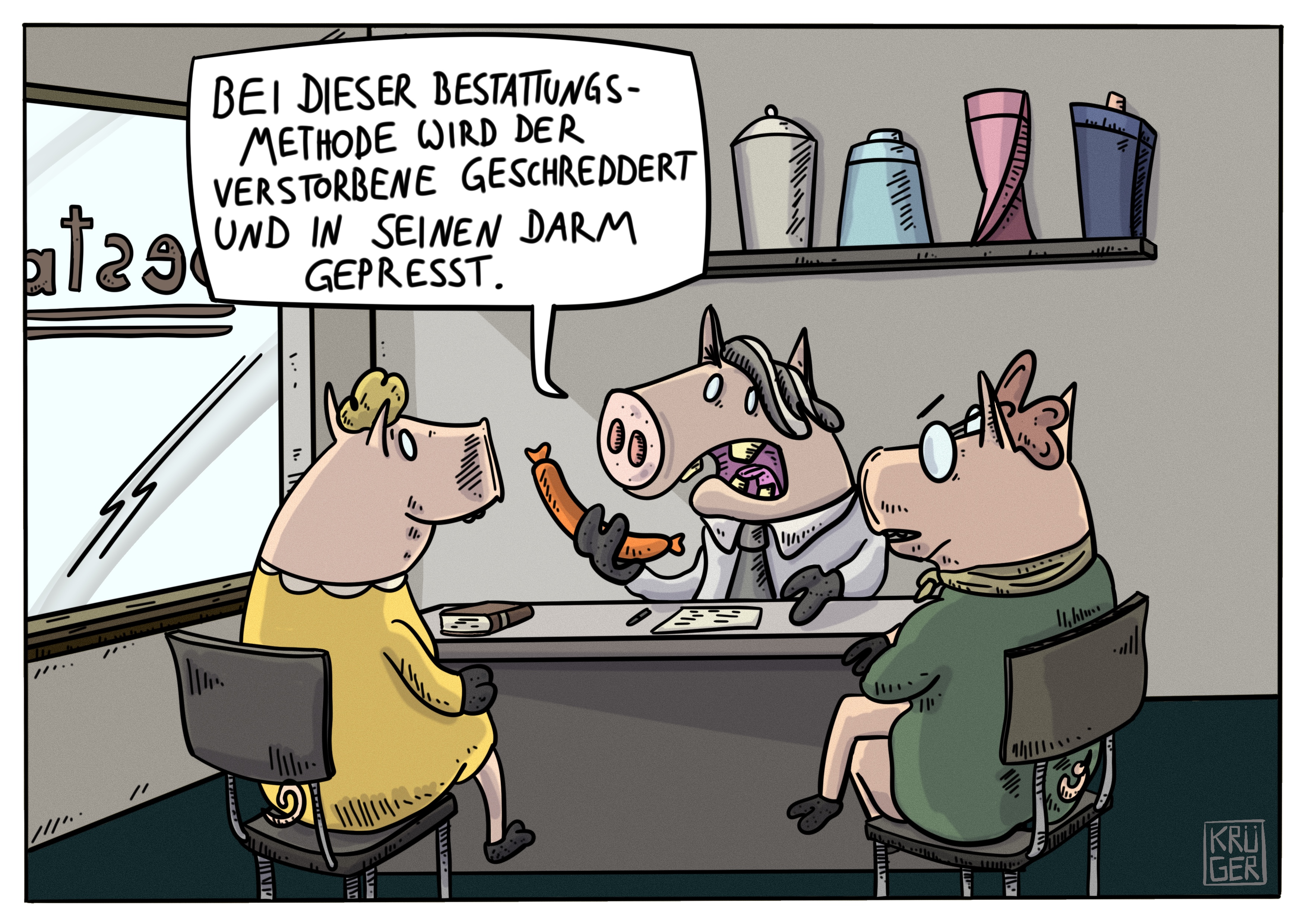 Karikaturen machen nicht nur Spaß, sie haben die Kraft, mit wenigen Strichen Wahrheiten ans Licht zu zerren, welche mit Worten nicht greifbar sind oder gerade absichtsvoll und wortreich verschleiert werden. Mit den Mitteln der Satire entlarven sie schonungslos Missstände, Verlogenheit und Bigotterie in Gesellschaft, Wirtschaft, Politik und Privatleben. Und sie sind deshalb so wirkungsvoll, weil sie uns jenen seltenen (Eulen-)Spiegel vorhalten, wir uns im selben Moment über uns selbst erschrecken und köstlich amüsieren können.
