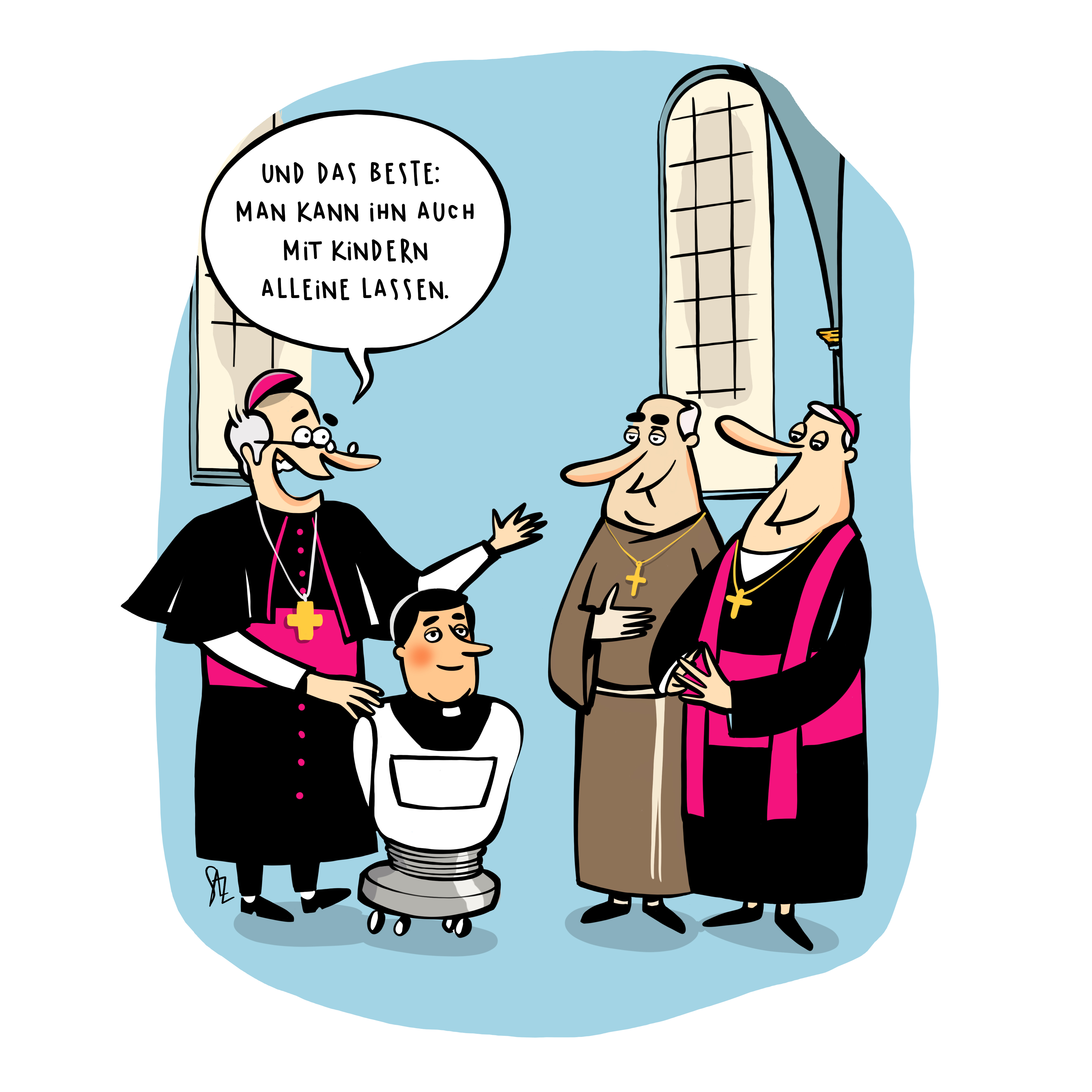 Meist sind die Siegerkarikaturen von sehr unterschiedlichem Charakter, denn die Künstlerinnen und Künstler interpretieren das jährliche Motto äußerst vielfältig. Manche mit schwarzem Humor, dass einem das Lachen im Halse stecken bleibt. Manche auf feinsinnige Art, die erst beim genauen Betrachten ihren Humor ausspielt. So gut wie immer aber pieken Karikaturen in Missstände, alltägliche Absurditäten, und wecken ab und an gar das Bedürfnis, ihnen zu widersprechen. Kurzum: Sie lassen kaum jemanden kalt. Wollen sie auch gar nicht! Von daher sind wir glücklich, wenn die Siegerauswahl ganz unterschiedliche Reaktionen beim Publikum hervorruft – solange sich jeder und jede an eine gewisse (N)Etikette dabei hält.